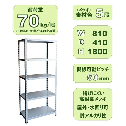 錆びにくいメッキを使用したスチールラックです。屋外や水回りでもご使用いただけます。耐アルカリ性があるため薬品棚としてや畜舎などでもご使用いただけます。 |