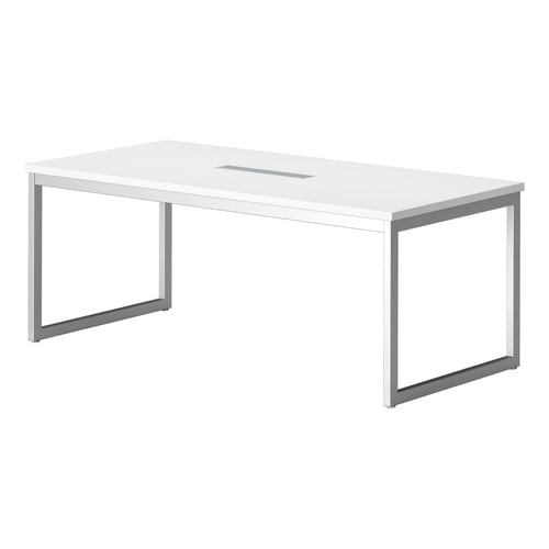 ロの字脚のミーティングテーブル。サイズのラインナップが多く、オフィスなどのオープンスペースに人気なモデルです。脚の間も広く配置されているので、1人当たりのスペースも広く使えることができます。 |
