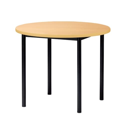 シンプルデザインの4本足、丸型ミーティングテーブル。どの面からも使用できる天板サイズです。スリムな足で圧迫感のない印象を与えます。塩化ビニル製のソフトエッジがケガ、傷防止になります。 |