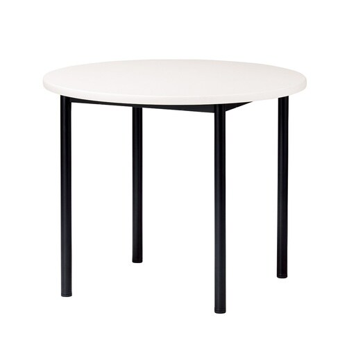 シンプルデザインの4本足、丸型ミーティングテーブル。どの面からも使用できる天板サイズです。スリムな足で圧迫感のない印象を与えます。塩化ビニル製のソフトエッジがケガ、傷防止になります。 |