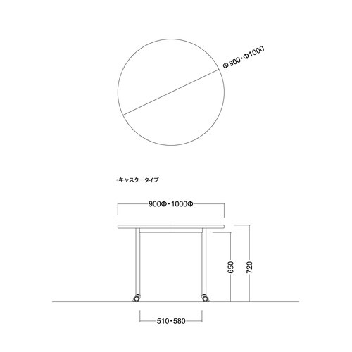 シンプルデザインの4本足、丸型ミーティングテーブル。スリムな足で圧迫感のない印象を与えます。塩化ビニル製のソフトエッジがケガ、傷防止になります。キャスター付きモデルで移動も簡単です。 |