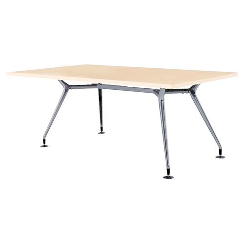 脚部シルエットが特徴的なミーティングテーブル。アルミ製、鏡面磨き上げ仕様。大きな空間でも注目を集めやすい、存在感のあるデザインです。 |