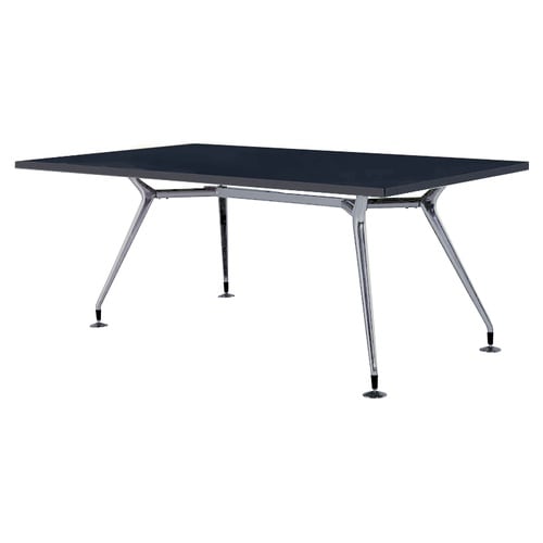 脚部シルエットが特徴的なミーティングテーブル。アルミ製、鏡面磨き上げ仕様。大きな空間でも注目を集めやすい、存在感のあるデザインです。 |