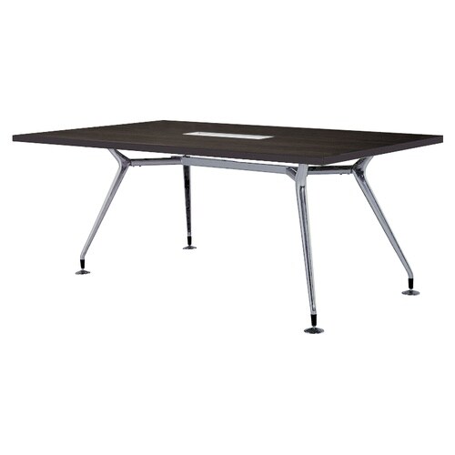 脚部シルエットが特徴的なミーティングテーブル。アルミ製、鏡面磨き上げ仕様。脚内側に配線スペースがあり、床への配線を収めることができます。大きな空間でも注目を集めやすい、存在感のあるデザインです。 |