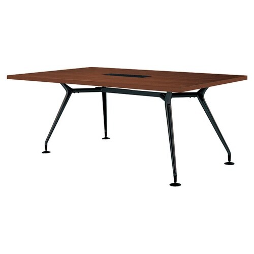 脚部シルエットが特徴的なミーティングテーブル。ブラック塗装仕様。脚内側に配線スペースがあり、床への配線を収めることができます。大きな空間でも注目を集めやすい、存在感のあるデザインです。 |