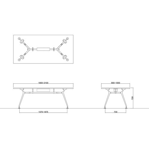 脚部シルエットが特徴的なミーティングテーブル。ブラック塗装仕様。脚内側に配線スペースがあり、床への配線を収めることができます。大きな空間でも注目を集めやすい、存在感のあるデザインです。 |