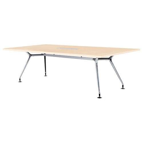 脚部シルエットが特徴的なミーティングテーブル。アルミ製、鏡面磨き上げ仕様。脚内側に配線スペースがあり、床への配線を収めることができます。大きな空間でも注目を集めやすい、存在感のあるデザインです。 |