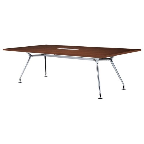 脚部シルエットが特徴的なミーティングテーブル。アルミ製、鏡面磨き上げ仕様。脚内側に配線スペースがあり、床への配線を収めることができます。大きな空間でも注目を集めやすい、存在感のあるデザインです。 |