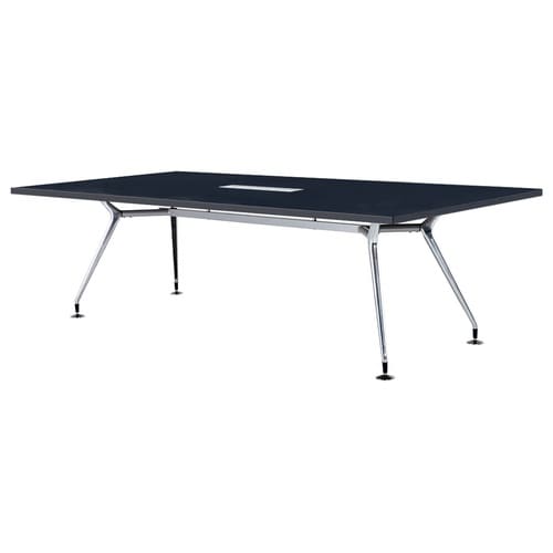 脚部シルエットが特徴的なミーティングテーブル。アルミ製、鏡面磨き上げ仕様。脚内側に配線スペースがあり、床への配線を収めることができます。大きな空間でも注目を集めやすい、存在感のあるデザインです。 |