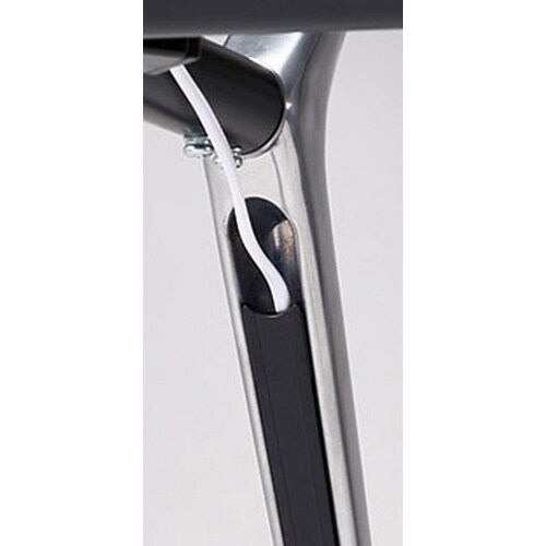 脚部シルエットが特徴的なミーティングテーブル。ブラック塗装仕様。脚内側に配線スペースがあり、床への配線を収めることができます。大きな空間でも注目を集めやすい、存在感のあるデザインです。 |