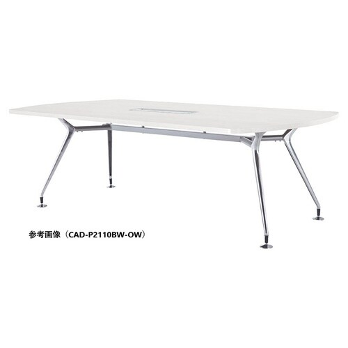 CADミーティングテーブル 幅1800×奥行900 オフホワイト×ポリッシュ ボート型 ワイヤリングBOX付 CAD−P1890BW−OW 1台 【メーカー直送/車上渡し】(お客様組立)