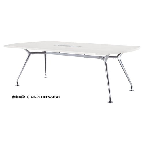 CADミーティングテーブル 幅2100×奥行900 オフホワイト×ポリッシュ ボート型 ワイヤリングBOX付 CAD−P2190BW−OW 1台 【メーカー直送/車上渡し】(お客様組立)