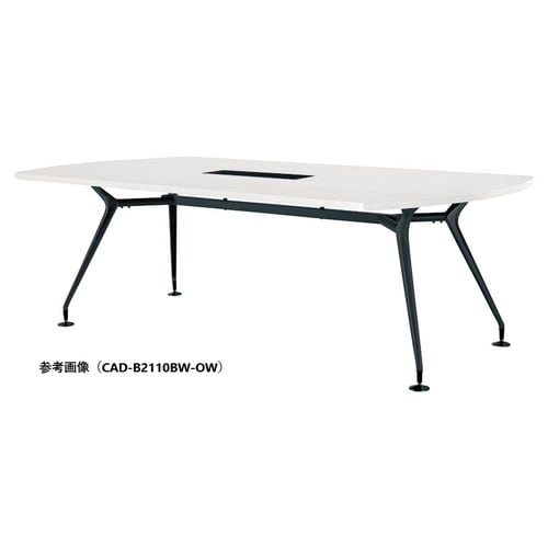 CADミーティングテーブル 幅2100×奥行900 オフホワイト×ブラック ボート型 ワイヤリングBOX付 CAD−B2190BW−OW 1台 【メーカー直送/車上渡し】(お客様組立)