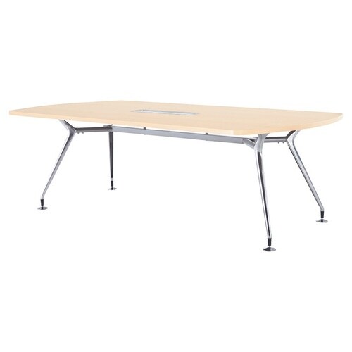脚部シルエットが特徴的なミーティングテーブル。アルミ製、鏡面磨き上げ仕様。脚内側に配線スペースがあり、床への配線を収めることができます。大きな空間でも注目を集めやすい、存在感のあるデザインです。 |