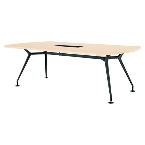 脚部シルエットが特徴的なミーティングテーブル。ブラック塗装仕様。脚内側に配線スペースがあり、床への配線を収めることができます。大きな空間でも注目を集めやすい、存在感のあるデザインです。 |