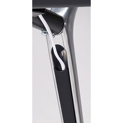 脚部シルエットが特徴的なミーティングテーブル。アルミ製、鏡面磨き上げ仕様。脚内側に配線スペースがあり、床への配線を収めることができます。大きな空間でも注目を集めやすい、存在感のあるデザインです。 |