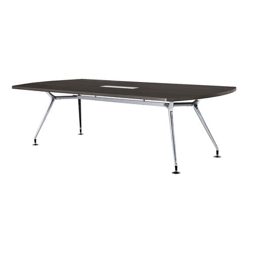脚部シルエットが特徴的なミーティングテーブル。アルミ製、鏡面磨き上げ仕様。脚内側に配線スペースがあり、床への配線を収めることができます。大きな空間でも注目を集めやすい、存在感のあるデザインです。 |