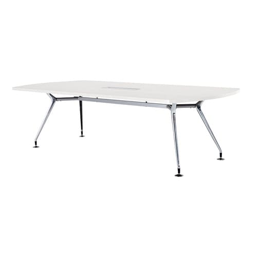 脚部シルエットが特徴的なミーティングテーブル。アルミ製、鏡面磨き上げ仕様。脚内側に配線スペースがあり、床への配線を収めることができます。大きな空間でも注目を集めやすい、存在感のあるデザインです。 |