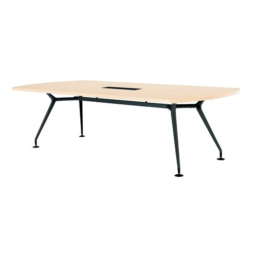 脚部シルエットが特徴的なミーティングテーブル。ブラック塗装仕様。脚内側に配線スペースがあり、床への配線を収めることができます。大きな空間でも注目を集めやすい、存在感のあるデザインです。 |