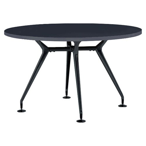 脚部シルエットが特徴的なミーティングテーブル。ブラック塗装仕様。天板は円形で、大きな空間でも注目を集めやすい、存在感のあるデザインです。 |