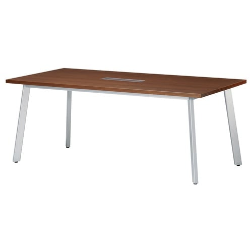 UMミーティングテーブル 幅1800×奥行900 ウォールナット×シルバー ワイヤリングBOX付 UM−S1890KW−WN 1台 【メーカー直送/車上渡し】(お客様組立)