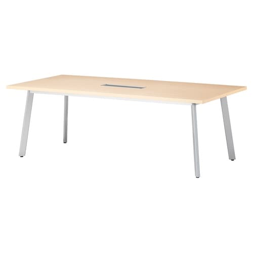 UMミーティングテーブル 幅2100×奥行1000 ライトオーク×シルバー ワイヤリングBOX付 UM−S2110KW−LO 1台 【メーカー直送/車上渡し】(お客様組立)