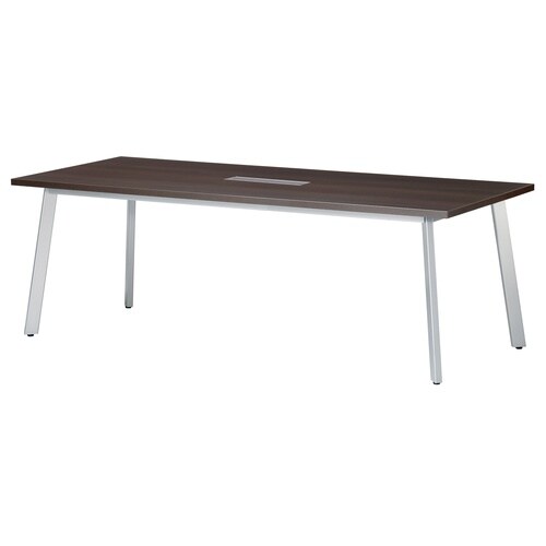 UMミーティングテーブル 幅2400×奥行1200 ダークウッド×シルバー ワイヤリングBOX付 UM−S2412KW−DW 1台 【メーカー直送/車上渡し】(お客様組立)