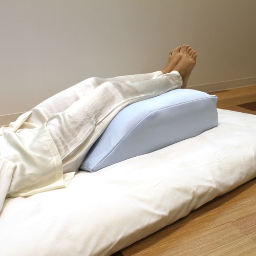 一日頑張ったお疲れ状態の足を癒すクッション。本品は太ももから足全体を支えるので膝にかかる負担を軽減。膝の屈曲に合わせた形状で上面のわたが足に優しくフィットし、土台のウレタンがしっかりと底支えします。