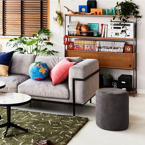 シンプルでコロンとした形に、ステッチで程よくアクセントを効かせたスツール。様々なテイストやシーンにフィットする、合わせるアイテムを選ばないデザインです。