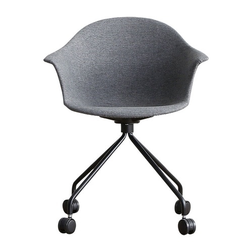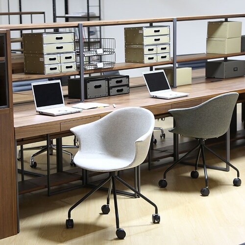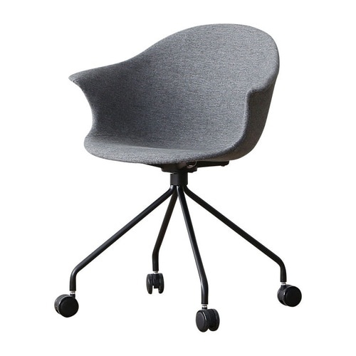 ニュアンスカラーでユニークなフォルムが目を引くモダンなデスクチェア。滑らかな曲線を描いて背から肘までつながるシームレスなデザインは無機質になりがちなオフィスに柔らかくユーモアあるムードをもたらします。 |