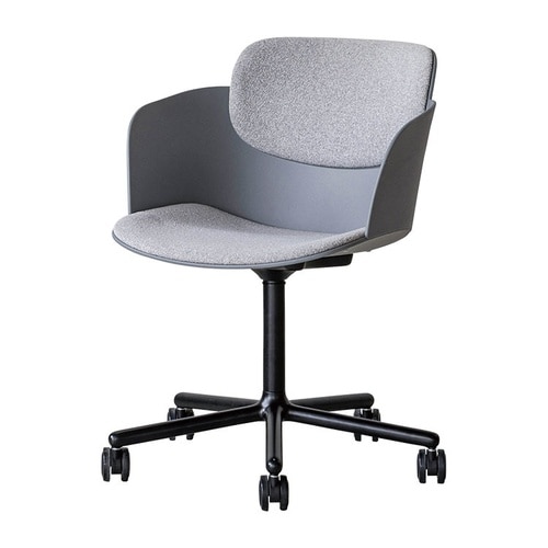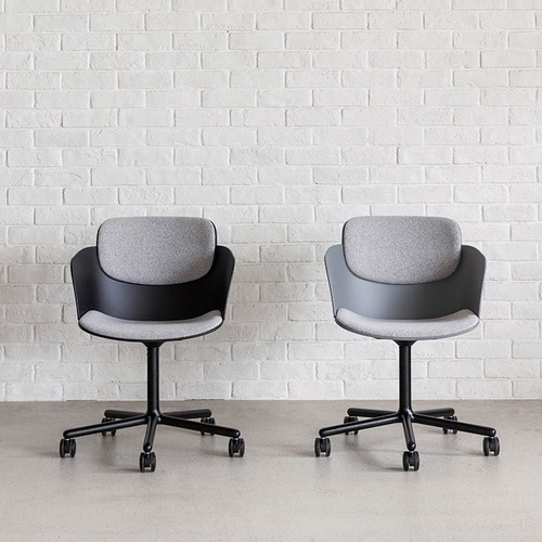 しなやかな曲線のフォルムと直線的な鉄脚が絶妙にマッチしたチェア。落ち着いた2色のカラーリングはシーンを選ばず様々な空間に溶け込みます。PP樹脂の背中と座面のクッションで身体を優しく受け止めます。