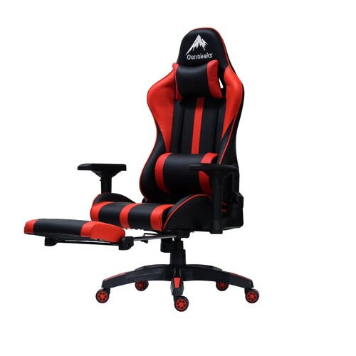 4Dアームレスト(昇降、前後、首振り、左右位置調整)を採用、適度な高さと位置で、肘をついてプレイが可能。座って右側のレバーを引き上げると135度までリクライニング可能。