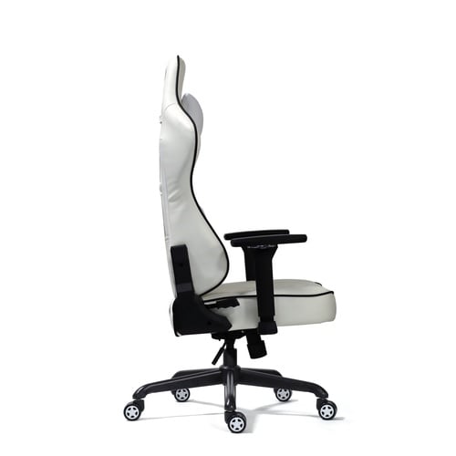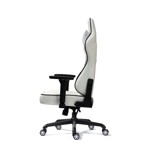 N4Dアームレスト(昇降、前後、首振り、左右位置調整)を採用、適度な高さと位置で、肘をついてプレイが可能。座って右側のレバーを引き上げると175度までリクライニング可能。 |