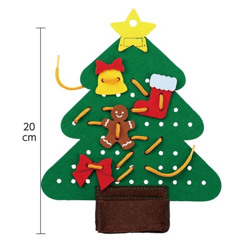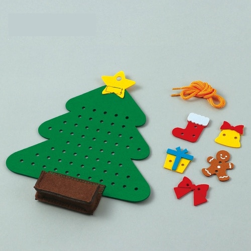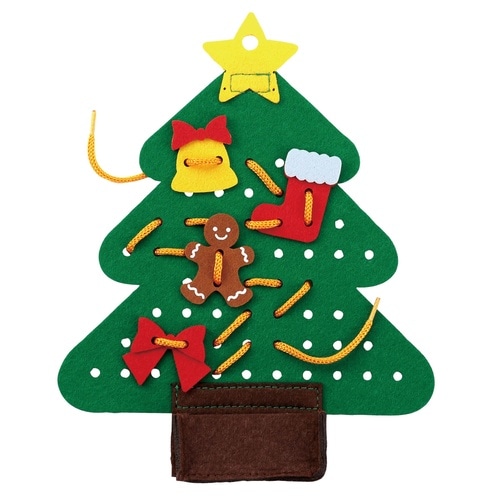 ひもとおしができる!クリスマスツリー型のひもとおし遊び |