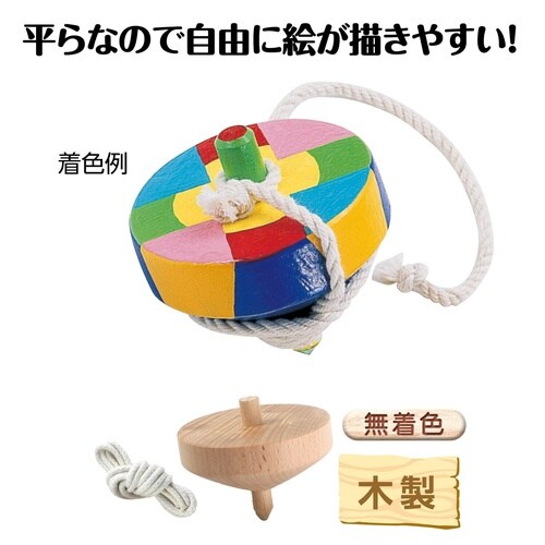 平らなので自由に絵が描きやすい!木製のコマです。無着色なのでオリジナルのコマがつくれます。平らなので自由に絵が描きやすくなっています。丈夫な組みひもを使用しています。 |