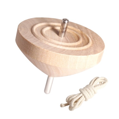 鉄芯でよく回るコマです。無着色なので、オリジナルのコマがつくれます。丈夫な組みひもを使用しています。 |