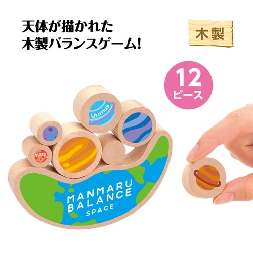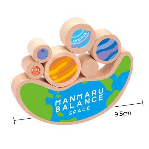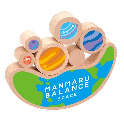 地球の土台に惑星を積んでいくバランスゲーム!天体が描かれた木製バランスゲームです。 |