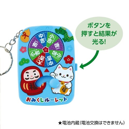 当てろ!大吉!スイッチで光るおみくじルーレットのキーホルダーです。 |