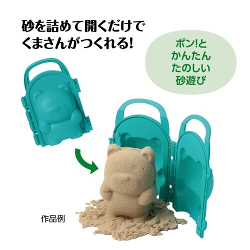 ポン!とかんたんたのしい砂遊び。砂を詰めて開くだけでくまさんが作れる! |