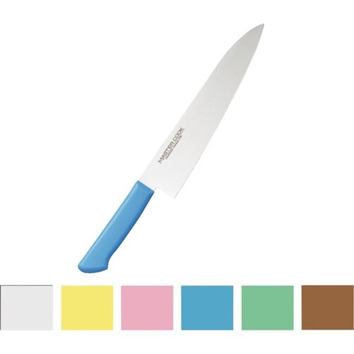 ハンドルカラーは6色あります。肉類、魚貝類、野菜、果実、パン類、加工済食品など食品別に利用できるので衛生管理できます。本研刃造り、本刃付、サブゼロ処理です。 |