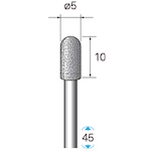 粒度(#):120 | 刃径(mm):5 | 刃長(mm):10 | 軸径(mm):3 | 全長(mm):45 | 最高使用回転数(rpm):8000…