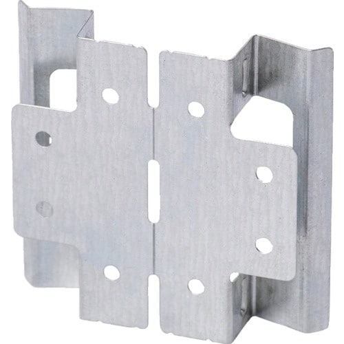 金具でスタッドを挟んで仮固定。合板を金具にスライドして挟み込み仮固定。最後、付属ねじで固定する。 |