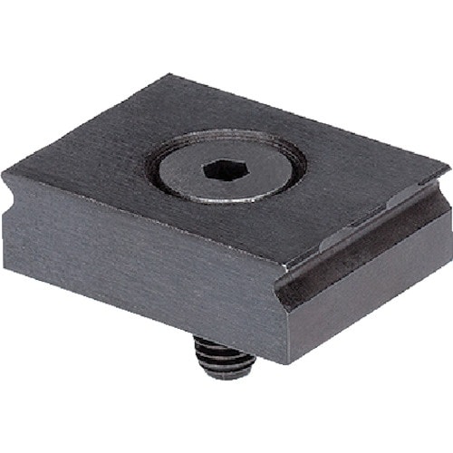 このクランプ爪はマシン・バイスや加工治具に組み込まれ、その鋭いエッジがワークに喰い込んでクランプします。クランプ爪の固定には、ネジ穴とザグリ穴や溝を使い、突き当てはワークの位置決めに。