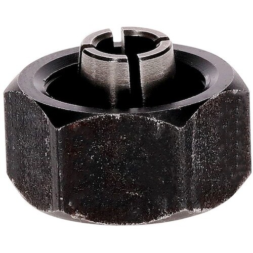 コレットとロックナットが一体になっています。ルータービットを正確に本体に取り付けします。 |