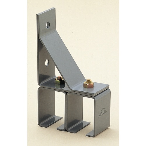 トラックレールの受け部材として使用する金具です。トラックレール(ハンガーレール)を構築物に取付ける金具で壁面取付け用の横受金具、レール2連用として。 |