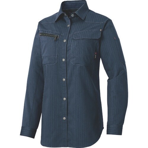 色:ネイビー | サイズ:L | タイプ:長袖 | その他仕様:帯電防止 | その他仕様:前立てドッボタン(プラスチック) | ポケットファスナー:ビ…