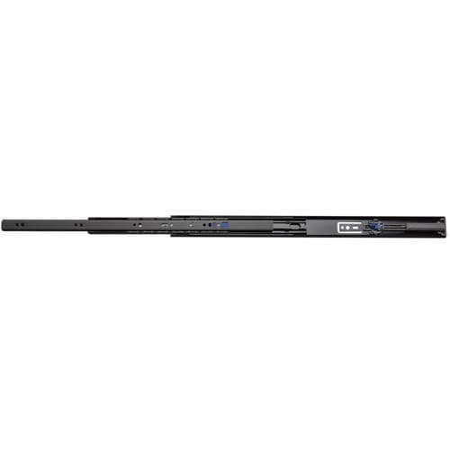 スライドレール3670のブラック仕様です。アウターメンバー取付部の衝撃吸収効果によりキャビネットの多少の変形にもスムーズなスライドが得られます。レバー操作でインナーメンバーを取り外せます。 |