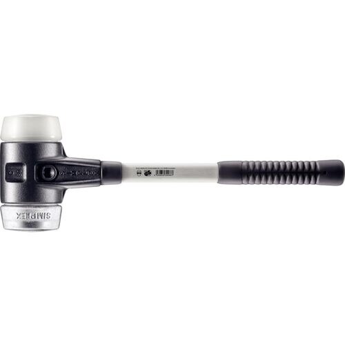 SIMPLEXハンマーは、スーパープラスチック製インサート(白色、中程度の硬さ、耐久性あり)とソフトメタル製インサート(銀色、硬く、耐熱性あり)を備えています。 |