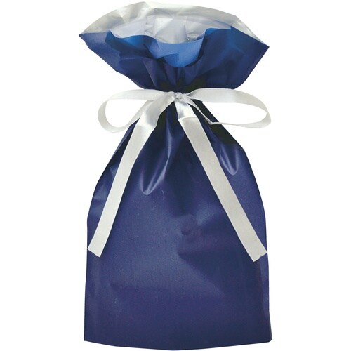 中身を入れて、両サイドのリボンを引っ張るだけで簡単に包める袋です。