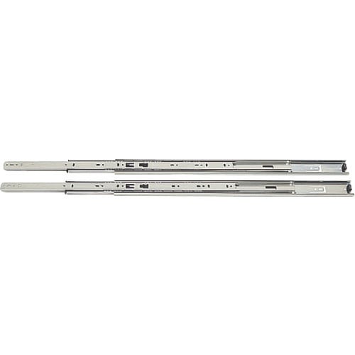 インナーメンバーを完全に引き出せる3段引のスライドレールです。レバー操作でインナーメンバーを取り外せます。レール全閉時にその状態を簡易的に保持します。